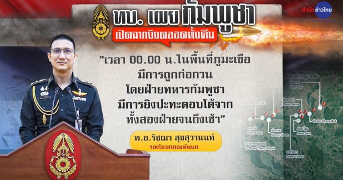 29 ก.ค.- ย้อนดูไทม์ไลน์ เหตุปะทะในหลายพื้นที่ชายแดนไทย-กัมพูชา หลังข้อตกลงหยุดยิงมีผลตั้งแต่เวลาเที่ยงคืนที่ผ่านมา ทันทีที่ข้อตกลงหยุดยิงแบบไม่มีเงื่อนไข ถูกกำหนดในเวลาเที่ยงคืน สมรภูมิสำคัญตลอดแนวชายแดนไทย-กัมพูชา โดยเฉพาะบริเวณปราสาทตาควาย ปราสาทตาเมือนธม เดือดถึงขีดสุด เพราะต่างฝ่ายต่างต้องการแย่งชิงพื้นที่ ยิ่ง 30 นาทีสุดท้ายก่อนเดดไลน์ ทหารหน่วยรบพิเศษของไทย เข้าปะทะ “กองกำลัง BHQ” ที่เสริมกำลังเข้ามาอย่างดุเดือด ก่อนที่ไทยจะยึดประสาทตาควายไว้ได้ก่อนถึงเส้นตายหยุดยิง แต่ปรากฏว่าเสียงปืนและระเบิด สงบลงหลังเส้นตายหยุดยิงเพียงไม่นาน ตลอดทั้งคืน ไทยยังถูกกัมพูชา ยิงยั่วยุ ยาวจนถึงเช้า ภาพนี้ทหารไทยได้ถ่ายเวลาจากนาฬิกา ในเวลา 06.29 น. ขณะได้ยินเสียงปืนใหญ่ที่ฝั่งกัมพูชาระดมยิงใส่ฝั่งไทยไว้เป็นหลักฐานว่า กัมพูชาละเมิดข้อตกลงหยุดยิง พันเอกริชฌา สุขสุวานนท์ รองโฆษก ทบ. เปิดเผยว่า ได้รับรายงานจากหน่วยในพื้นที่ กองกำลังสุรนารี ว่าหลังจากมีการหยุดยิง ในเวลา 00.00 น. แล้ว พบว่าในพื้นที่ภูมะเขือ ถูกก่อกวน โดยฝ่ายทหารกัมพูชา มีการยิงปะทะตอบโต้จากทั้งสองฝ่ายจนถึงเช้า พื้นที่ซำแต มีการยิงปะทะกันเกิดขึ้น จนถึงเวลา 05.30 น. เนื่องจากทหารกัมพูชาไม่ยอมหยุด […]