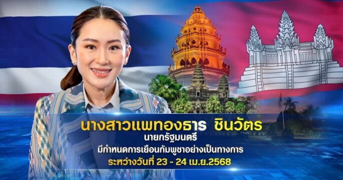 นายกรัฐมนตรี มีกำหนดเดินทางเยือนราชอาณาจักรกัมพูชาอย่างเป็นทางการ ในโอกาสครบรอบ 75 ปี การสถาปนาความสัมพันธ์ทางการทูตระหว่างไทย-กัมพูชา และการส่งเสริมความร่วมมือในการแก้ปัญหาและการพัฒนาของสองประเทศ โทรทัศน์รวมการเฉพาะกิจแห่งประเทศไทยรายงาน