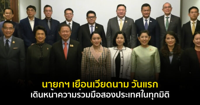 เวียดนาม 15 พ.ค. – นายกรัฐมนตรี เดินทางเยือนสาธารณรัฐสังคมนิยมเวียดนามอย่างเป็นทางการ พร้อมเดินหน้าความร่วมมือสองประเทศในทุกมิติ โดยเฉพาะการผลักดันไทยเป็นศูนย์กลางการบินและเทคโนโลยี.-สำนักข่าวไทย