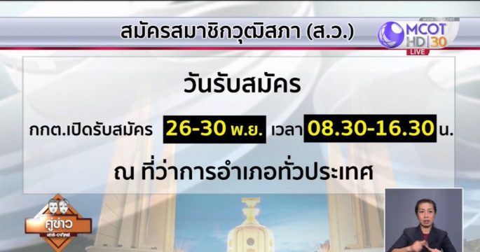 คณะกรรมการการเลือกตั้งจะเปิดรับสมัครสมาชิกวุฒิสภาระหว่างวันที่ 26-30 พ.ย. จึงขอเชิญชวนผู้สนใจให้ไปสมัครกันได้ ส่วนขั้นตอนจะเป็นอย่างไร ติดตามจากทีมข่าวการเมือง
