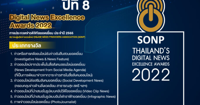 สมาคมผู้ผลิตข่าวออนไลน์ร่วมเอกชนมอบรางวัลข่าวดิจิทัลยอดเยี่ยม ประจำปี 2565 (Digital News Excellence Awards 2022) วันพฤหัสบดีที่ 8 ธันวาคม 2565 เมื่อเวลา 13.00 -16.00 น. ณ ห้องประชุมแมนดารินซี โรงแรมแมนดารินกรุงเทพ สมาคมผู้ผลิตข่าวออนไลน์ ร่วมกับ กองทุนพัฒนาสื่อปลอดภัยและสร้างสรรค์, บมจ. ซีพี ออลล์ จำกัด, บริษัท ตรีเพชรอีซูซุเซลส์ จำกัด, บริษัท เมืองไทยประกันชีวิต จำกัด (มหาชน), ธนาคารออมสิน, กลุ่มบริษัทซีดีจี ได้จัดโครงการประกวด “รางวัลข่าวดิจิทัลยอดเยี่ยม ประจำปี 2565” (Digital News Excellence Awards 2022) เพื่อส่งเสริมให้สื่อมวลชนออนไลน์หันมาให้ความสำคัญกับการผลิตข่าวดิจิทัลที่มีคุณภาพมากขึ้น ให้กำลังใจสื่อออนไลน์ นักข่าวดิจิทัล กองบรรณาธิการข่าวออนไลน์ ที่ให้ความสำคัญในการผลิตข่าว ในเชิงลึกสร้างสรรค์และจรรโลงสังคม อีกทั้งเพื่อยกระดับคุณภาพข่าวที่นำเสนอผ่านสื่อออนไลน์ สำหรับผลงานที่ได้รับรางวัล ประกอบด้วย 1. ประเภทข่าวหรือสารคดีเชิงข่าวออนไลน์เชิงสืบสวนยอดเยี่ยม […]