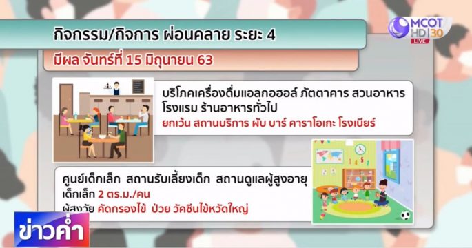 ศบค.ชุดใหญ่ เห็นชอบคลายล็อกเฟส 4 อนุญาตให้ขายเครื่องดื่มแอลกอฮอล์ในร้านอาหาร จัดคอนเสิร์ตได้ แต่ยังไม่ให้เปิดผับบาร์ อาบอบนวด เริ่ม 15 มิ.ย.นี้