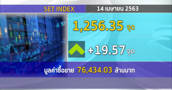 ตลาดหลักทรัพย์ปิดวันนี้ที่ระดับ 1,256.35 จุด เพิ่มขึ้น 19.57 จุด (+1.58%) มูลค่าการซื้อขาย 76,434.03 ล้านบาท การซื้อขายหุ้นวันนี้ ดัชนีหุ้นไทยเคลื่อนไหวในแดนบวกตลอดทั้งวัน โดยทำระดับสูงสุดที่ 1,267.55 จุด และทำระดับต่ำสุด 1,241.10 จุด