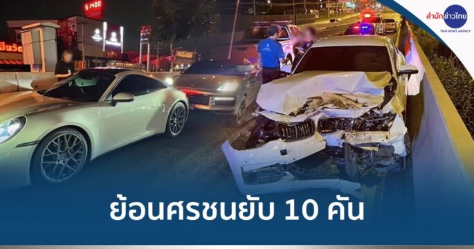 สาวเมาซิ่งรถหรู ย้อนศร 5 กม. ชนระเนระนาดพังยับ 10 คัน