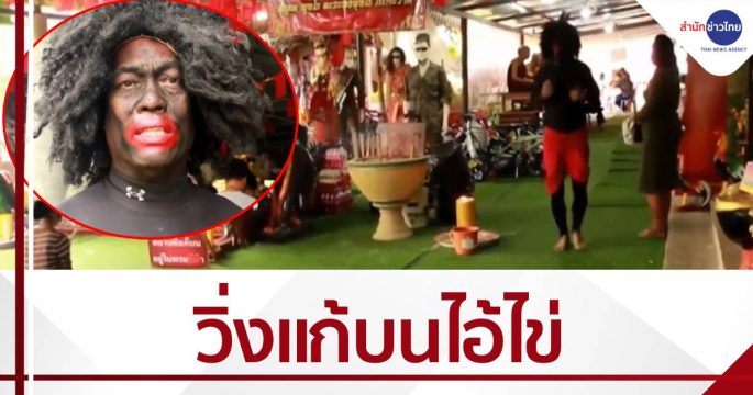 นายสมชาย ไทรทองมี อายุ 51 ปี ชาวตำบลไทยาวาส จ.นครปฐม แต่งตัวเป็นเงาะป่า นุ่งผ้าโจงกระเบนสีแดง ทาตัวดำ ผมหยิก ทาปากแดง มาวิ่งแก้บนรอบศาลไอ้ไข่ 9 รอบ ที่ตั้งประดิษฐานอยู่วัดเขากรวด ต.เกาะพลับพลา อ.เมือง จ.ราชบุรี หลังประสบความสำเร็จในสิ่งที่ขอ สร้างความฮือฮาให้ประชาชนที่มากราบไหว้บูชาไอ้ไข่