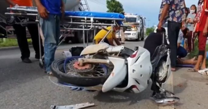 จยย.ซิ่งชนสามล้อพ่วงข้างบริเวณถนนบ้านหนองหัวฟาน อ.ขามสะแกแสง จ.นครราชสีมา บาดเจ็บ 5 คน