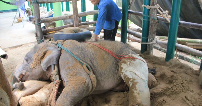 พลายศรีคำ วัย 1 ปี อาการทรุด แพทย์ศูนย์อนุรักษ์ช้างไทยดูแลใกล้ชิด เผยกำพร้าแม่แต่กำเนิด ไม่ได้กินนม จึงขาดภูมิคุ้มกัน