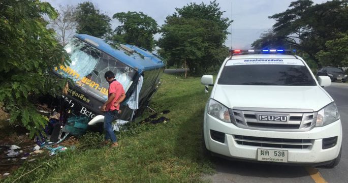 เกิดอุบัติเหตุถนนสายเอเชีย-นครศรีธรรมราช รถ 18 ล้อบรรทุกปูนซิเมนต์ตกร่องถนน ส่วนท้ายพ่วงพาดขึ้นมาบนช่องจราจร ทำให้รถทัวร์กรุงเทพ-เบตง หลบไม่ทันเสยท้ายเสียชีวิต 2 เจ็บอีกนับสิบ