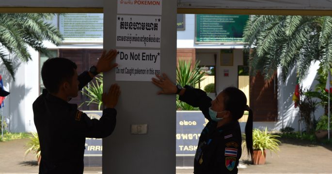 ตม.สระแก้วขึ้นป้าย 3 ภาษา “ห้ามจับโปเกมอนในสถานที่ราชการ” ชี้กระทบช่องสัญญาณอินเทอร์เน็ต ขณะที่บ่อนกัมพูชาสั่งห้ามพนักงานเล่นในเวลางาน
