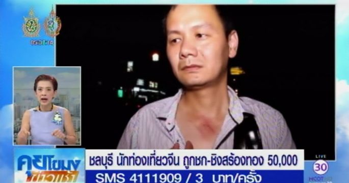 นักท่องเที่ยวจีนถูกคนร้ายวัยรุ่นชกหน้า ก่อนกระตุกสร้อยคอทองคำมูลค่า 50,000 บาท ขี่ จยย.หนี เหตุเกิดที่ ต.นาเกลือ อ.บางละมุง จ.ชลบุรี