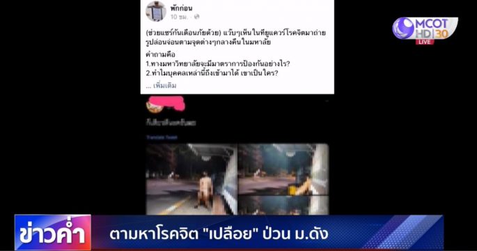 เพจดังเตือนภัยนักศึกษามหาวิทยาลัยธรรมศาสตร์ ศูนย์รังสิต หลังมีชายถ่ายภาพเปลือยอัพทวิตเตอร์ พร้อมแคปชั่น “ก็เสียวดีนะ มธ.” เหตุการณ์นี้รองอธิการบดีไม่นิ่งนอนใจ เข้าแจ้งความให้ตำรวจล่าตัวชายคนนี้ พร้อมเพิ่มการดูแลพื้นที่อย่างเข้มข้น เพื่อความปลอดภัยของนักศึกษา