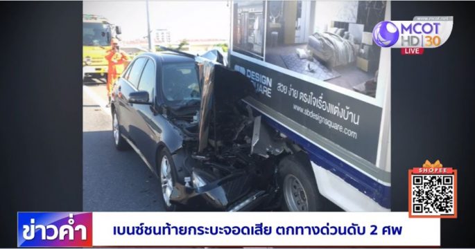 ช่วงสายของวันนี้เกิดเหตุสลด เมื่อหญิงสูงอายุขับรถเบนซ์พุ่งชนท้ายรถกระบะบรรทุกสินค้าที่จอดเสียอยู่บนไหล่ทาง ทำให้มีผู้เคราะห์ร้ายตกจากทางด่วนกระแทกพื้นเสียชีวิต 2 ราย