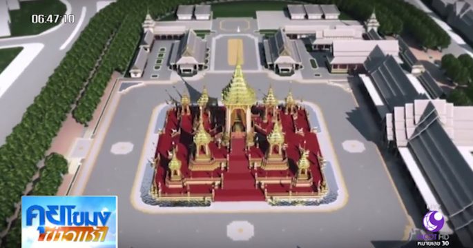 ภาพรวมงานสร้างพระเมรุมาศ คืบหน้าไปแล้วกว่า 30% โดยเฉพาะพระเมรุมาศประธานทรงบุษบก 9 ยอด ที่เริ่มเข้าสู่ขั้นตอนสำคัญ คือ การขยายแบบเท่าจริง งานช่างจึงต้องใช้ความชำนาญสูง