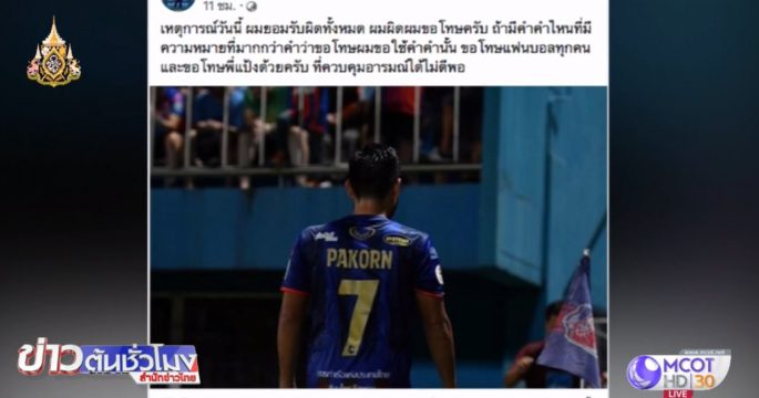 “เจ้าบาส” ปกรณ์ เปรมภักดิ์ นักเตะการท่าเรือ เอฟซี โพสต์เฟซบุ๊กขอโทษ ยอมรับผิดทั้งหมด หลังระเบิดอารมณ์ใส่แฟนบอล ในเกมเปิดแพท สเตเดี้ยม เสมอกับ ชลบุรี เอฟซี 2-2 ในศึกไทยลีก 2019 เมื่อคืนที่ผ่านมา