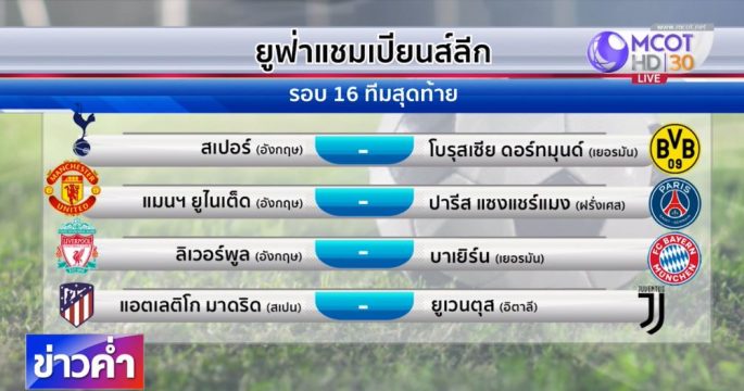 ผลการจับสลากศึกยูฟ่า แชมเปียนส์ ลีก รอบ 16 ทีมสุดท้าย ปรากฏว่า 2 ทีมที่ครองแชมป์ยุโรป 5 สมัย คือ หงส์แดง ลิเวอร์พูล และบาเยิร์น มิวนิค โคจรมาพบกันในรอบนี้