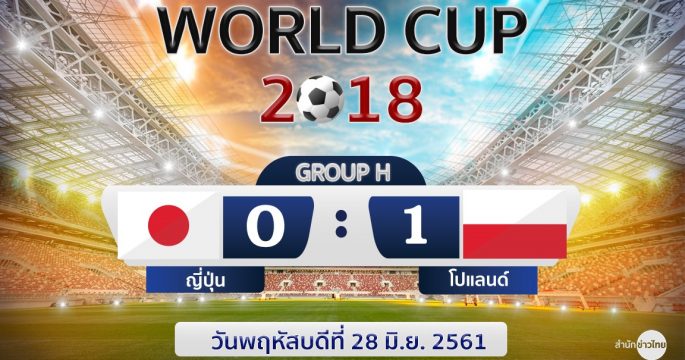 ฟุตบอลโลก รอบแบ่งกลุ่ม นัดสุดท้าย กลุ่มเอช ญี่ปุ่น แพ้ โปแลนด์ 0-1 แต่ญี่ปุ่นยังสามารถเข้ารอบ 16 ทีมสุดท้ายได้ ในอันดับสองของกลุ่ม มี 4 คะแนนเท่าเซเนกัล ลูกได้เสียเท่ากัน แต่เข้ารอบเพราะโดนใบเหลืองน้อยกว่า โดยเข้าไปรอพบแชมป์กลุ่มจี ระหว่าง อังกฤษ และเบลเยียม ที่จะแข่งขันคู่ดึก เวลา 01.00 น. ส่วนโปแลนด์ มี 3 คะแนน ตกรอบ
