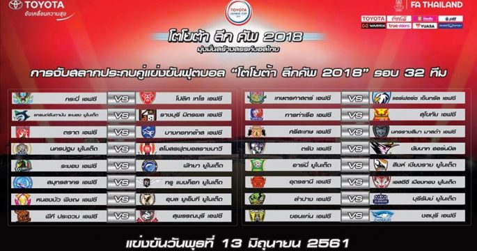 สมาคมกีฬาฟุตบอลแห่งประเทศไทย ร่วมกับ บริษัท ไทยลีก จำกัด ทำพิธีจับสลากประกบคู่การแข่งขันฟุตบอลโตโยต้า ลีก คัพ รอบ 32 ทีมสุดท้าย