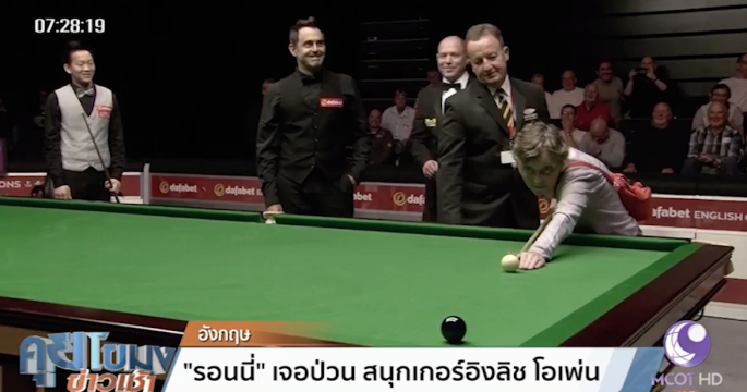 รอนนี่ โอ ซุลลิแวน นักสอยคิวชื่อดังชาวอังกฤษ เจอผู้ชมหญิงลงไปป่วนขณะที่กำลังจะแทงลูกชมพู แต่ก็ยังเอาชนะนักสอยคิวจากจีน ในสนุกเกอร์อิงลิช โอเพ่นที่อังกฤษ
