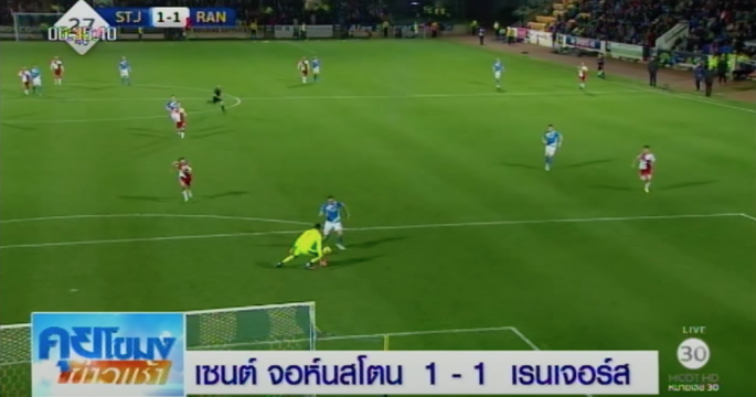 กลาสโกว์ เรนเจอร์ส พลาดทำคะแนนจี้จ่าฝูง หลังทำได้เพียงแค่เสมอกับ เซนต์ จอห์นสโตน 1-1 ในฟุตบอลสกอตติช พรีเมียร์ลีก