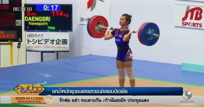 นวพร แดงศรี คว้าเหรียญทองท่าสแนทช์จากแข่งขันยกน้ำหนักยุวชนและเยาวชนชิงแชมป์เอเชียที่ญี่ปุ่น