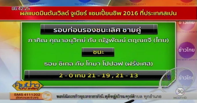 กัณตภณ หวังเจริญ กับ พรปวีณ์ ช่อชูวงศ์ สองนักแบดเยาวชนไทย ผ่านเข้ารอบตัดเชือก แบดมินตันเยาวชนชิงแชมป์โลก ที่สเปน