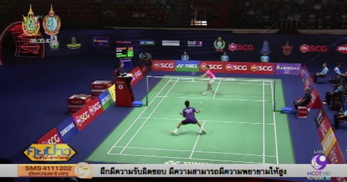 ทนงศักดิ์ แสนสมบูรณ์สุข ผ่านเข้ารอบชิงชนะเลิศหลังชนะนักตบจากญี่ปุ่น พร้อมทรัพย์สิรี แต้รัตนชัย กับพุธิตา สุภจิรกุล ประเภทหญิงคู่ในศึกแบดมินตันเอสซีจี