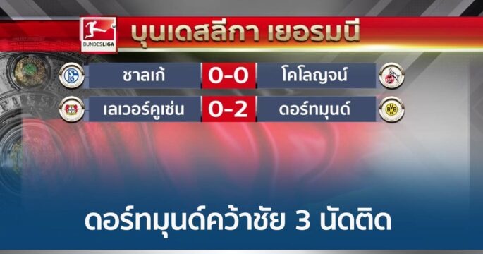 โบรุสเซีย ดอร์ทมุนด์ คว้าชัย 3 นัดติดต่อกันในลีก หลังบุกไปชนะ ไบเออร์ เลเวอร์คูเซน 2-0 ในศึกฟุตบอลบุนเดสลีกา เยอรมนี
