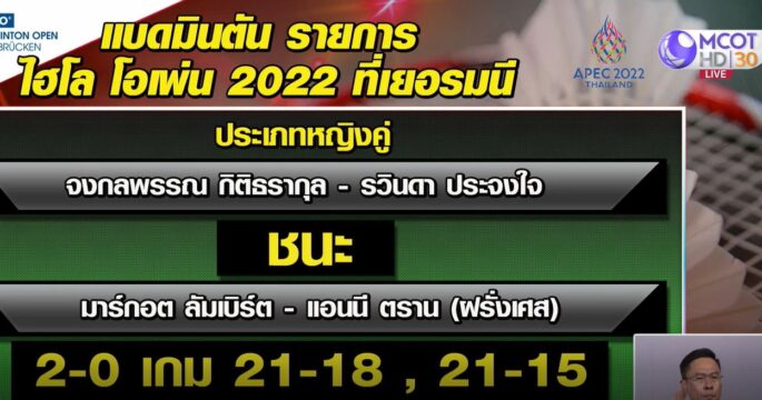 จงกลพรรณ กิติธรากุล กับ รวินดา ประจงใจ เข้ารอบชิงชนะเลิศ แบดมินตัน ไฮโล โอเพ่น 2022 พบกับ สองพี่น้อง “มูนา” เบญญาภา กับ “อันนา” นันทน์กาญจน์