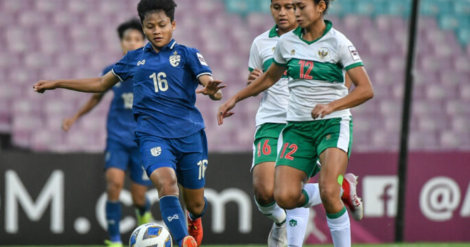 24 ม.ค.65 อินเดีย-ที่สนาม ดี วาย พาติล การแข่งขันฟุตบอลหญิงชิงแชมป์เอเชีย รอบสุดท้าย รอบแบ่งกลุ่ม กลุ่มบีนัดที่สอง ทีมชาติไทย พบกับ ทีมชาติอินโดนีเซีย โดยเกมแรก ไทยแพ้ ฟิลิปปินส์ มา 0-1 ส่วนอินโดนีเซีย แพ้ออสเตรเลีย มา 0-18 เกมนี้ มิโยะ โอกาโมโตะ เปลี่ยน 11 ตัวจริงยกชุด สำหรับรายชื่อ 11 ตัวจริง ทีมชาติไทย ดารุณี สอนเผ่า (GK) – วิลัยพร บุตรด้วง, พิกุล เขื่อนเพ็ชร, อิรวดี มาคริส, จารุวรรณ ไชยรักษ์, อุไรพร ยงกุล ,อมรรัตน์อุดไชย, สุนิสา สร้างไธสง (C), พิสมัย สอนไสย์, ธนีกานต์ แดงดา, กัญญาณัฐ เชษฐบุตร เริ่มเกมมานาทีที่ 27 ไทยมาได้ประตูขึ้นนำจากลูกเตะมุมที่ วิลัยพร บุตรด้วง เล่นสั้นให้ จารุวรรณ ไชยรักษ์ เปิดให้ กัญญาณัฐ เชษฐบุตร โหม่งเข้าไปให้ ชบาแก้ว นำก่อน 1-0 และนาทีที่ 36 ธนีกานต์ แดงดา หลุดขึ้นมาก่อนไหลให้ กัญญาณัฐ เชษฐบุตร ล้มตัวยิงเข้าไปให้ ไทยนำห่างอินโดนีเซีย เป็น 2-0 และจบครึ่งแรกด้วยสกอร์นี้ ครึ่งหลังไทยพยายามบุกอย่างหนัก จนนาทีที่ 71 ไทยมาได้ประตูนำห่างเป็น 3-0 จากจังหวะที่ กัญญาณัฐ เชษฐบุตรได้ลองยิงไกลด้วยขวาเข้าไปเป็นแฮตทริก นาทีที่ 76 ไทยมาได้ประตูที่สี่จนได้จากจังหวะที่ อิรวดี มาคริส เปิดบอลยาวและบอลย้อยเข้าไปให้ไทยนำห่างเป็น 4-0 ช่วงเวลาที่เหลือไม่มีประตูเพิ่มเติมจบเกม ทีมชาติไทย เอาชนะ ทีมชาติอินโดนีเซียไป 4-0 เก็บสามแต้มแรก และยังมีโอกาสผ่านเข้ารอบน็อคเอาท์ต่อไป ส่วนผล อีกคู่ ออสเตรเลีย ชนะ ฟิลิปปินส์ 4-0 ทำให้ ออสเตรเลีย ผ่านเข้ารอบต่อไปในฐานะแชมป์กลุ่มแน่นอนแล้ว 1 ทีม โปรแกรมนัดต่อไป ทีมชาติไทย จะพบกับ ออสเตรเลีย ที่สนาม ดีวาย พาติล ในวันที่ 27 มกราคม 2565 เวลา 21.00 น. (ตามเวลาประเทศไทย)-สำนักข่าวไทย