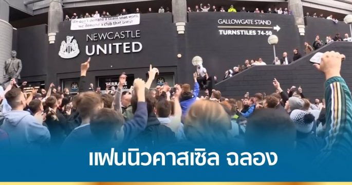 แฟนบอลนิวคาสเซิล รวมตัวฉลองกันที่สนามเซนต์เจมส์ พาร์ค ซึ่งเป็นสนามเหย้าของสโมสร หลังทีมถูกขายให้กับกลุ่มทุนซาอุฯ