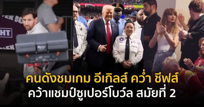 ควันหลงศึกซูเปอร์โบว์ล ครั้งที่ 59 ฟิลาเดลเฟีย อีเกิลส์ เอาชนะ แคนซัส ซิตี้ ชีฟส์ มีบุคคลสำคัญนำโดย ประธานาธิบดีโดนัลด์ ทรัมป์ รวมถึงดารานักแสดง และนักกีฬาชื่อดังไปร่วมชมการแข่งขันอย่างคับคั่ง