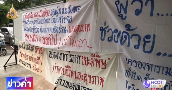 ชาวบ้าน ต.ท่าถ่าน อ.พนมสารคาร จ.ฉะเชิงเทรา ติดตามผลตรวจสอบค่าสารพิษปนเปื้อนในแหล่งน้ำ โดยขอให้หน่วยงานที่เกี่ยวข้องเข้ามาแก้ไขปัญหาอย่างจริงจัง หรือเพิกถอนใบอนุญาตโรงงานกำจัดขยะอิเล็กทรอนิกส์ และโรงงานรีไซเคิลน้ำมัน เพื่อลดผลกระทบทางสิ่งแวดล้อม