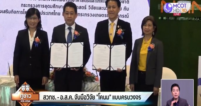 สวทช.ลงนามความร่วมมือกับ อ.ส.ค. เพื่อพัฒนากิจการ โคนมแบบครบวงจร หวังยกระดับกิจการโคนม เดินหน้าวิจัย “นมผงพันธุ์ไทย-นมอัดเม็ดพรีเมี่ยม-ผลิตภัณฑ์จากนมเพื่อผู้สูงวัย”