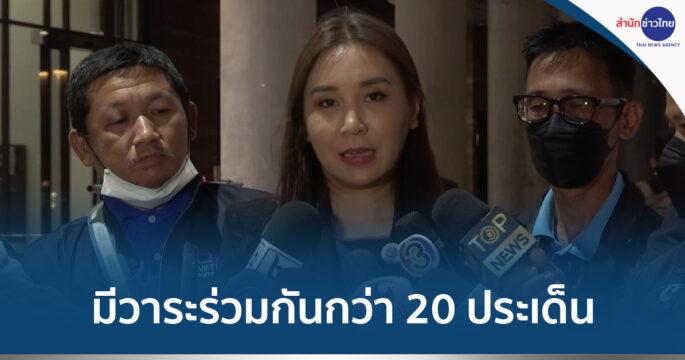 “ศิริกัญญา” รองหัวหน้าพรรคก้าวไกล เผย MOU ของ 8 พรรคที่จะร่วมกันจัดตั้งรัฐบาล มีวาระร่วมกันกว่า 20 ประเด็น ส่วนการพูดคุยกับ ส.ว. มีแนวโน้มสัญญาณบวก