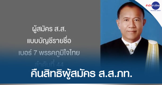 กกต.ประกาศคืนสิทธิ “คณนาถ หมื่นหนู” เป็นผู้สมัครรับเลือกตั้ง ส.ส.บัญชีรายชื่อ ลำดับที่ 44 ของพรรคภูมิใจไทย