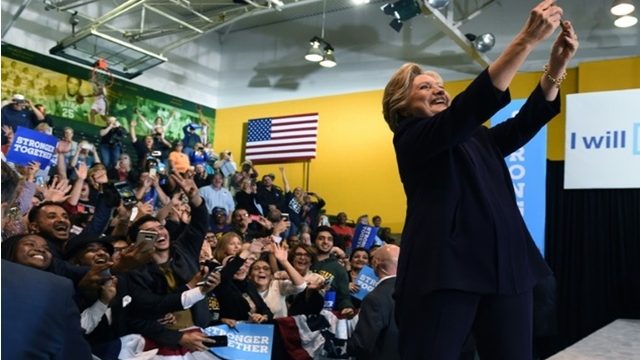 นางฮิลลารี คลินตัน ตัวแทนพรรคเดโมแครตชิงตำแหน่งประธานาธิบดีสหรัฐไปหาเสียงที่มหาวิทยาลัยโอไฮโอหลังเสร็จสิ้นการโต้วาทีแสดงวิสัยทัศน์รอบสอง