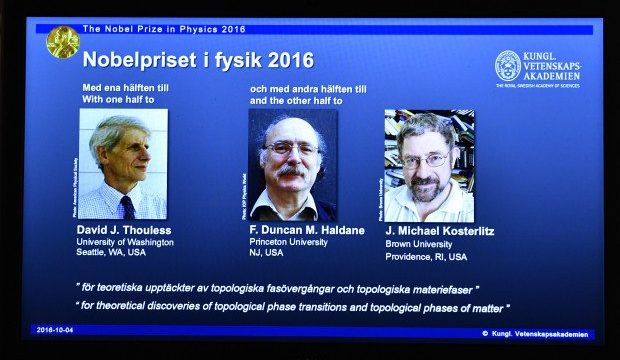 นายเดวิด ทูเลส นายดันแคน ฮัลเดน และนายไมเคิล คอสเตอร์ลิตซ์ นักวิทยาศาสตร์เชื้อสายอังกฤษ คว้ารางวัลโนเบลสาขาฟิสิกส์ประจำปี 2559