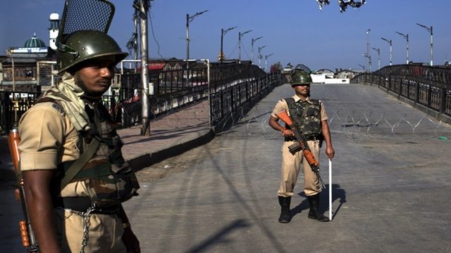 กองกำลังฝ่ายรัฐบาลอินเดียขึงลวดหนามและวางแผงเหล็กกั้นถนนในรัฐแคชเมียร์ เพื่อป้องกันกลุ่มแบ่งแยกดินแดนเดินขบวนประท้วง