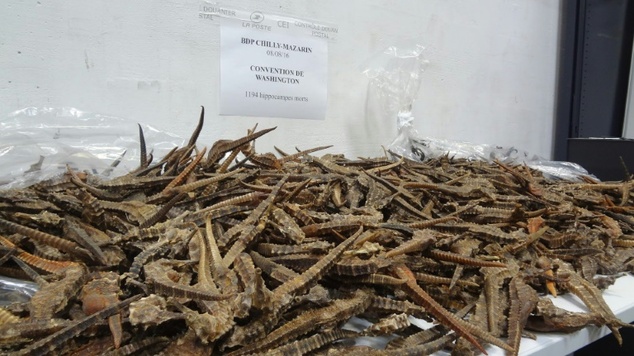 เจ้าหน้าที่ฝรั่งเศสพบซากม้าน้ำราว 2,000 ตัว ซึ่งถือเป็นของราคาแพงในเอเชีย เพื่อใช้เป็นส่วนประกอบในยาแผนโบราณและยากระตุ้นความต้องการทางเพศ