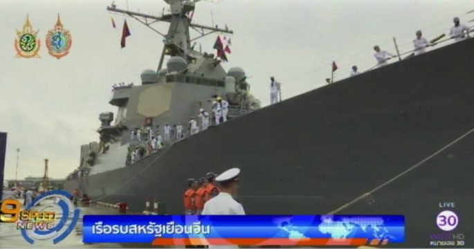เรือรบยูเอสเอส เบนโฟลด์ ของกองทัพเรือสหรัฐ เข้าเทียบท่าที่จีน โดยเป็นเรือรบสหรัฐลำแรกที่เยือนจีน นับตั้งแต่คำตัดสินกรณีทะเลจีนใต้