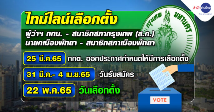 9 ข่าวค่ำ ช่วงที่ 3 วันจันทร์ที่ 14 มีนาคม 2565• เลือกตั้งผู้ว่าฯ กทม.-นายกเมืองพัทยา 22 พ.ค.นี้• เพื่อไทยส่งผู้สมัคร ส.ก. ครบ 50 เขต• นายกฯ นัดกินข้าวพรรคเล็ก 17 มี.ค. เหมือนเดิม• ททท.จัดเทศกาลงาน WAT ที่อุทยาน 100 ปี จุฬาฯ• ลม ฟ้า อากาศ