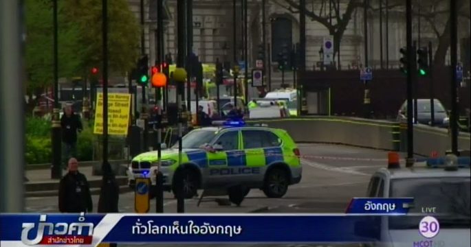 ข่าวค่ำ (ต่างประเทศ) วันพฤหัสบดีที่ 23 มีนาคม 2560 อังกฤษเฝ้าระวังเข้มหลังเหตุโจมตีกลางลอนดอน ผู้นำเอเชียเสียใจเหตุโจมตีกรุงลอนดอน-ประณามผู้ก่อเหตุ ไทยสั่งเฝ้าระวังสถานที่สำคัญ ยืนยันเหตุโจมตีลอนดอนไม่กระทบไทย