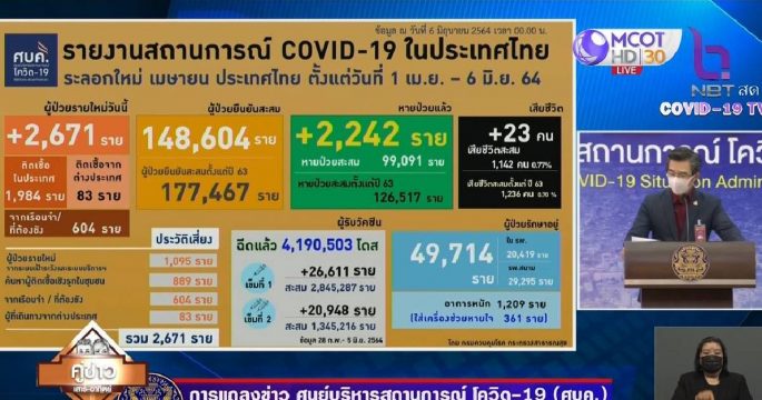 คู่ข่าวเสาร์-อาทิตย์ (ช่วงที่ 3) วันอาทิตย์ที่ 6 มิถุนายน 2564• เฝ้าระวังคลัสเตอร์ใหม่ในกทม.+ตจว.• ตรวจแคมป์คนงานย่านลาดพร้าวหลังพบผู้ติดเชื้อ• สด ศบค. รายงานสถานการณ์โควิด-19• ศาสตร์ปันสุขสุดสัปดาห์ : เทคโนโลยีเพิ่มประสิทธิภาพ-มูลค่ามะม่วงบ้านท่าทอง
