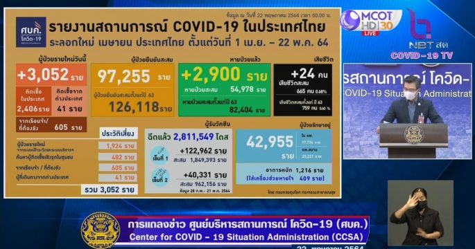 คู่ข่าว เสาร์-อาทิตย์ (ช่วงที่ 3) วันเสาร์ที่ 22 พฤษภาคม 2564• โควิดคลัสเตอร์เพชรบุรี ยอดสะสม 1,690 คน• รพ.นาหว้า ยืนยันผู้ป่วยโควิดล่าสุด ไม่ใช่สายพันธุ์อินเดีย• ศบค.เผยยอดป่วยโควิดรายใหม่ 3,052 ราย เสียชีวิต 24 ราย• ศาสตร์ปันสุข : กลุ่มแปลงใหญ่ทุเรียน ต.ดงขี้เหล็ก จ.ปราจีนบุรี