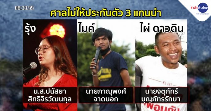 ข่าวเช้า ช่วงที่ 1 วันอังคารที่ 9 มีนาคม 2564► ศาลไม่ให้ประกัน 3 แกนนำราษฎร คดีชุมนุมสนามหลวง► ศาลไม่ให้ประกัน “โตโต้” แกนนำกลุ่มวีโว่► นายกฯ ลั่นไม่ทอดทิ้งกะเหรี่ยงบางกลอย► รมว.ทรัพยากรฯ เร่งแก้ปัญหาความเป็นอยู่ชาวบางกลอย► พายุฤดูร้อนถล่มฉะเชิงเทรา หนักสุดในรอบ 30 ปี► ต้นมะขามเทศยักษ์ล้ม ไฟดับกว่า 2 ชม.► ฟ้าพิโรธ! ฟ้าผ่าไฟไหม้ห้องนาฏศิลป์ รร.ศรีประจันต์ฯ