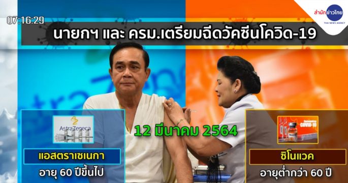 ข่าวเช้า ช่วงที่ 2 วันศุกร์ที่ 12 มีนาคม 2564► นายกฯ เตรียมฉีดวัคซีนป้องกันโควิด-19► คนไทยฉีดวัคซีนแล้ว 36,797 คน ไม่พบอาการไม่พึงประสงค์► ศบค.ชุดใหญ่เตรียมเคาะสาดน้ำสงกรานต์ 19 มี.ค.► “อนุทิน” ป้องนายกฯ ฉีดสเปรย์แอลกอฮอล์หยอกสื่อ► รัฐสภาแก้รัฐธรรมนูญได้ แต่ต้องทำประชามติ► World Pulse โลกเล่าเรื่อง : โรงแรมสไตล์ “เรียวกัง” ใจกลางกรุง