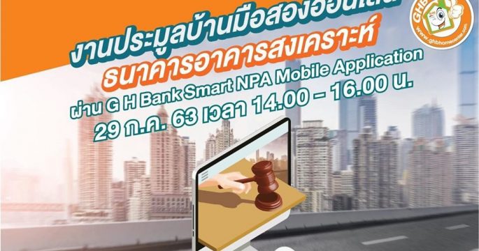 ธอส.ประมูลบ้านมือสองออนไลน์ครั้งแรก 29 ก.ค. ส่วนลดสูงสุด 20% ผ่อนดาวน์นานสูงสุด 60 เดือน ไม่มีดอกเบี้ย