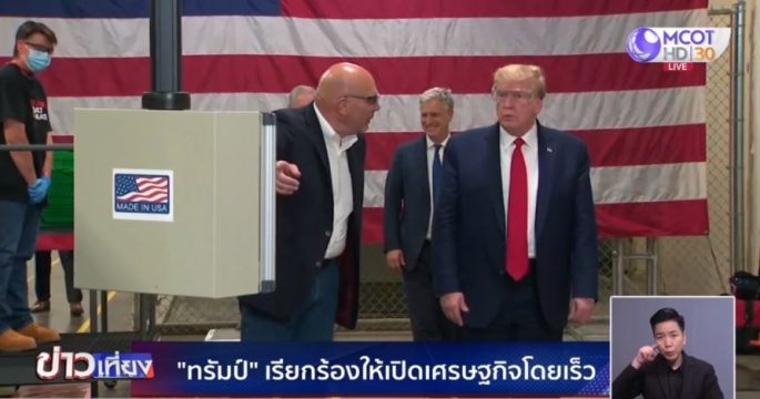ข่าวเที่ยง (ต่างประเทศ) วันพุธที่ 6 พฤษภาคม 2563 “ทรัมป์” เรียกร้องแต่ละรัฐเปิดเศรษฐกิจโดยเร็ว อังกฤษมียอดตายโควิด-19 มากเป็นอันดับ 2 ของโลก รอบโลก ระงับออกอากาศทีวีฟิลิปปินส์ เตรียมฉลอง 1 ขวบ เจ้าชายอาร์ชี พยาบาลสหรัฐเต้นรำคลายเครียด