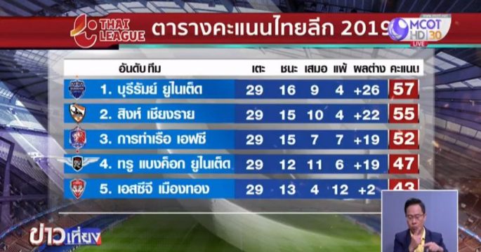 ข่าวเที่ยง (กีฬา) วันอังคารที่ 29 ตุลาคม 2562