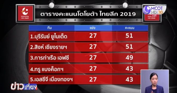 ข่าวเที่ยง (กีฬา) วันจันทร์ที่ 30 กันยายน 2562
